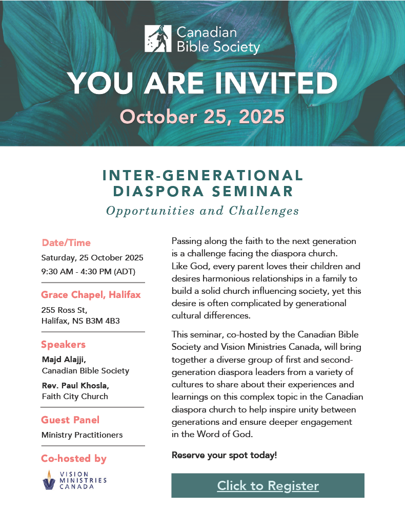 An Event for Diaspora Churches here in Halifax, presented by the Canadian Bible Society.