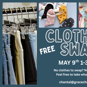 Register now!Bring gently-used clothing and take home some “new-to-you” treasures. All ages and sizes welcome. No contribution required to participate. Leftover items will be donated locally.