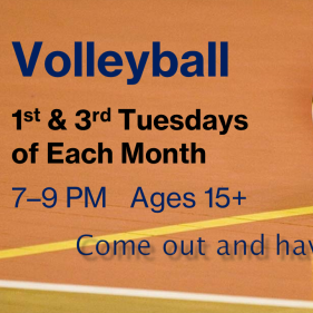 This evening of recreational volleyball is open to all people over 15 years old.